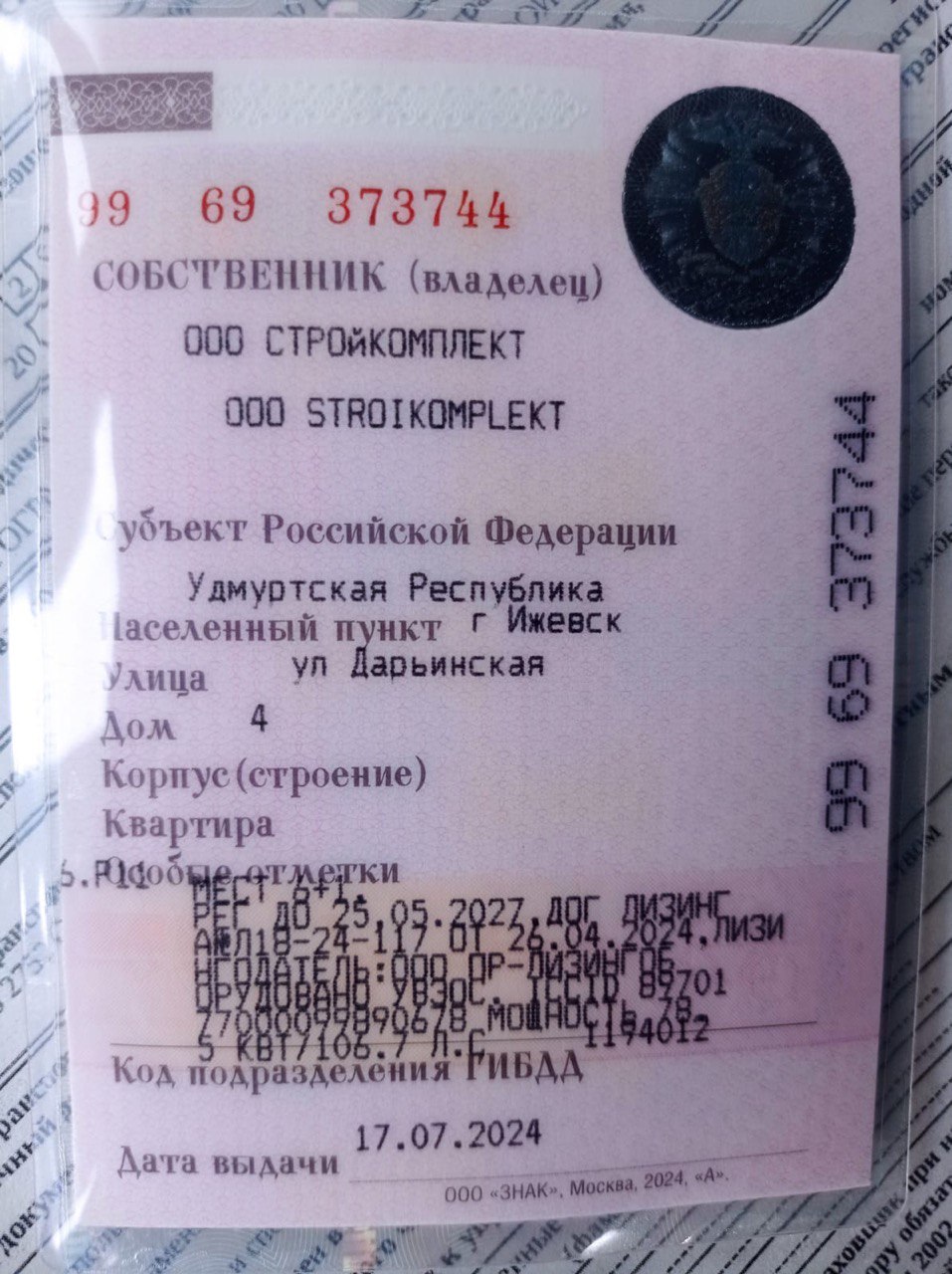 VIN: X96275270N0939757, г/н С556МТ 18.