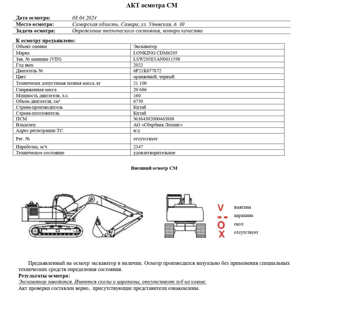 Экскаватор LONKING CDM6205, 2022, Идентификационный номер: LSW205E5AN0031598. Начальная цена продажи: 5950000 рублей 00 копеек, в том числе НДС 20%....