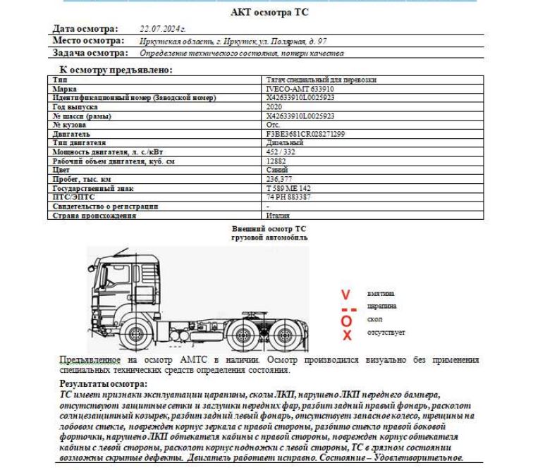 Тягач специальный для перевозки опасных грузов IVECO-AMT 633910, 2020, Идентификационный номер: X42633910L0025923. Начальная цена продажи: 6728000 рублей 00 копеек, в том числе НДС 20%.