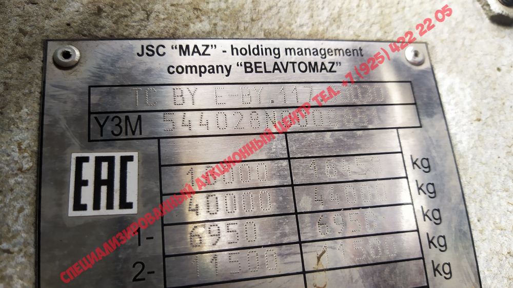 Тягач седельный МАЗ 544028, 2022, Идентификационный номер: Y3M544028N0000851. Начальная цена продажи: 3442000 рублей 00 копеек, в том числе НДС 20%....