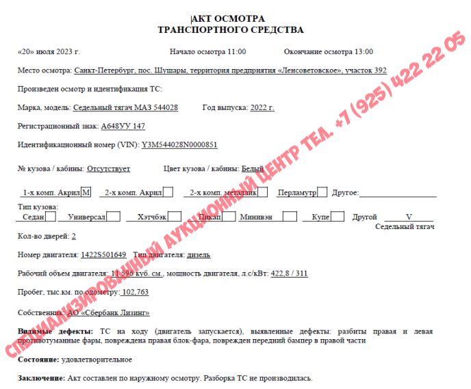 ТС не снято с регистрационного учета. Снятие и постановка на учет в органах ГТН осуществляется покупателем самостоятельно с выдачей доверенности от АО Сбербанк Лизинг. СТС на транспортное средство отсутствует, восстановление за счет покупателя