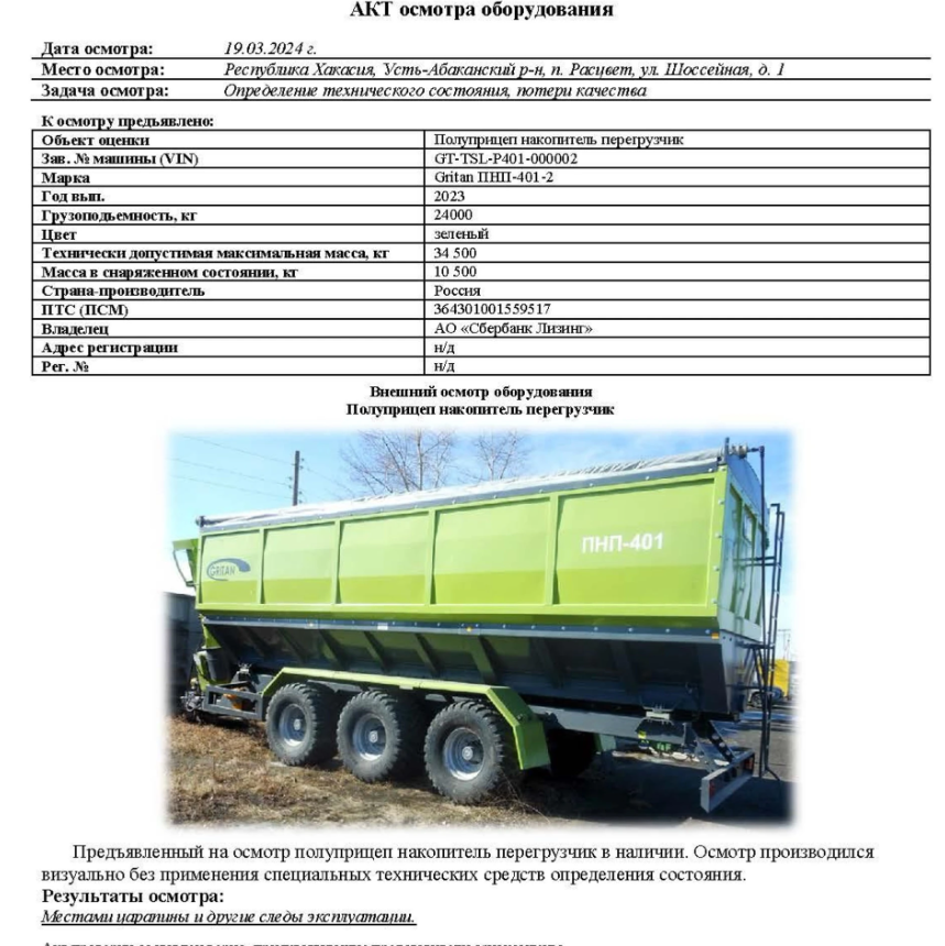 Полуприцеп накопитель перегрузчик ГРИТАН ПНП-401, идентификационный номер: GT-TSL-P401-00000 2,  год выпуска: 2023.  Техническое состояние: удовлетворительное.  Местонахождение: Республика Хакасия, Усть-Абаканский район, п. Расцвет, ул. Шоссейная, д. 1