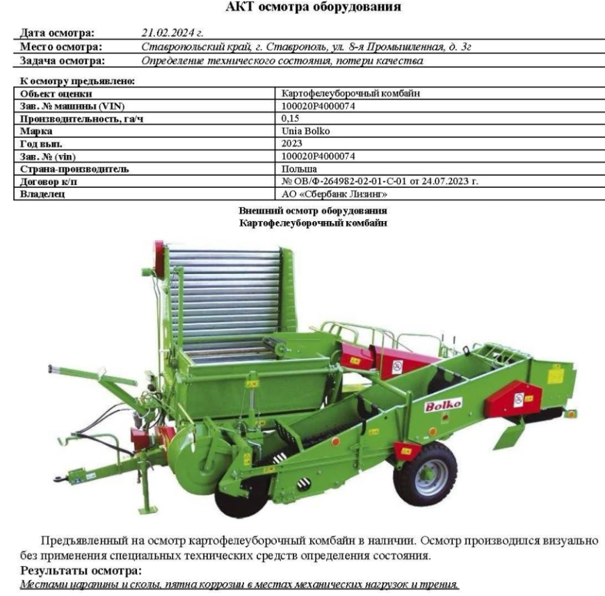 Картофелеуборочный комбайн, идентификационный номер: 100020P4000074,  год выпуска: 2023.  Техническое состояние: удовлетворительное.  Местонахождение: Ставропольский край, г. Ставрополь, ул. 8-я Промышленная, д. 3г